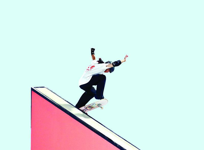 作为赛场上的“老将”,潘家杰在比赛中以“稳”为主,两轮比赛下来,排名暂居第二。然而,在动作展示环节,他第一个动作就出现失误。好在这位经验丰富的选手迅速调整状态、火力全开,凭借精准的平衡感和出色的爆发力,连贯完成空中转体、滑板飞跃等一系列高难度动作,最后以领先对手24.46分的优势夺冠。