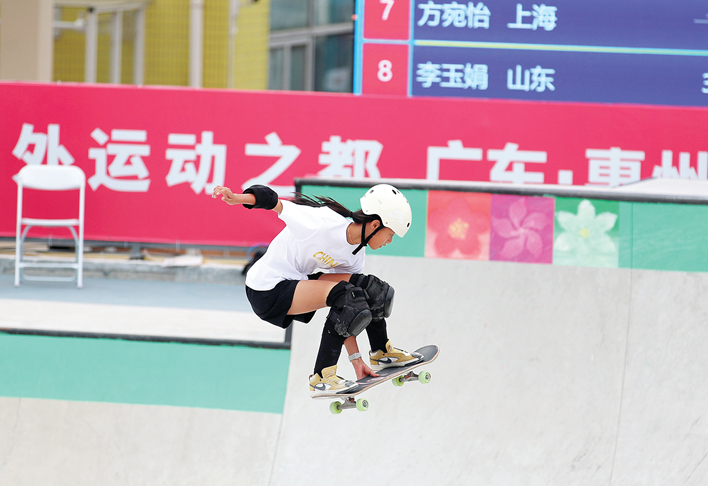 赛场之外,滑板为她连接起珍贵的友谊。与同为惠州运动员的奥运小将郑好好朝夕相伴的训练时光,成了艰苦备战中的温暖注脚。“我们每天都在一起玩,都喜欢做饭,特别志趣相投。”在广东队这个全国唯一满额参赛的滑板劲旅中,这种互促互进的氛围,滋养着年轻选手的成长。
